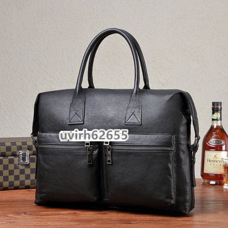 - 本革 メンズバッグ ハンドバッグ ビジネスバッグ ヌメ革 レザー 書類鞄 ショルダーバッグ 大容量