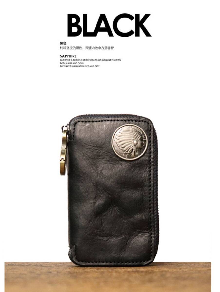 - キーケース ブラック カードケース 小物 本革 ヴィンテージ アメカジ バイク 小銭入れ