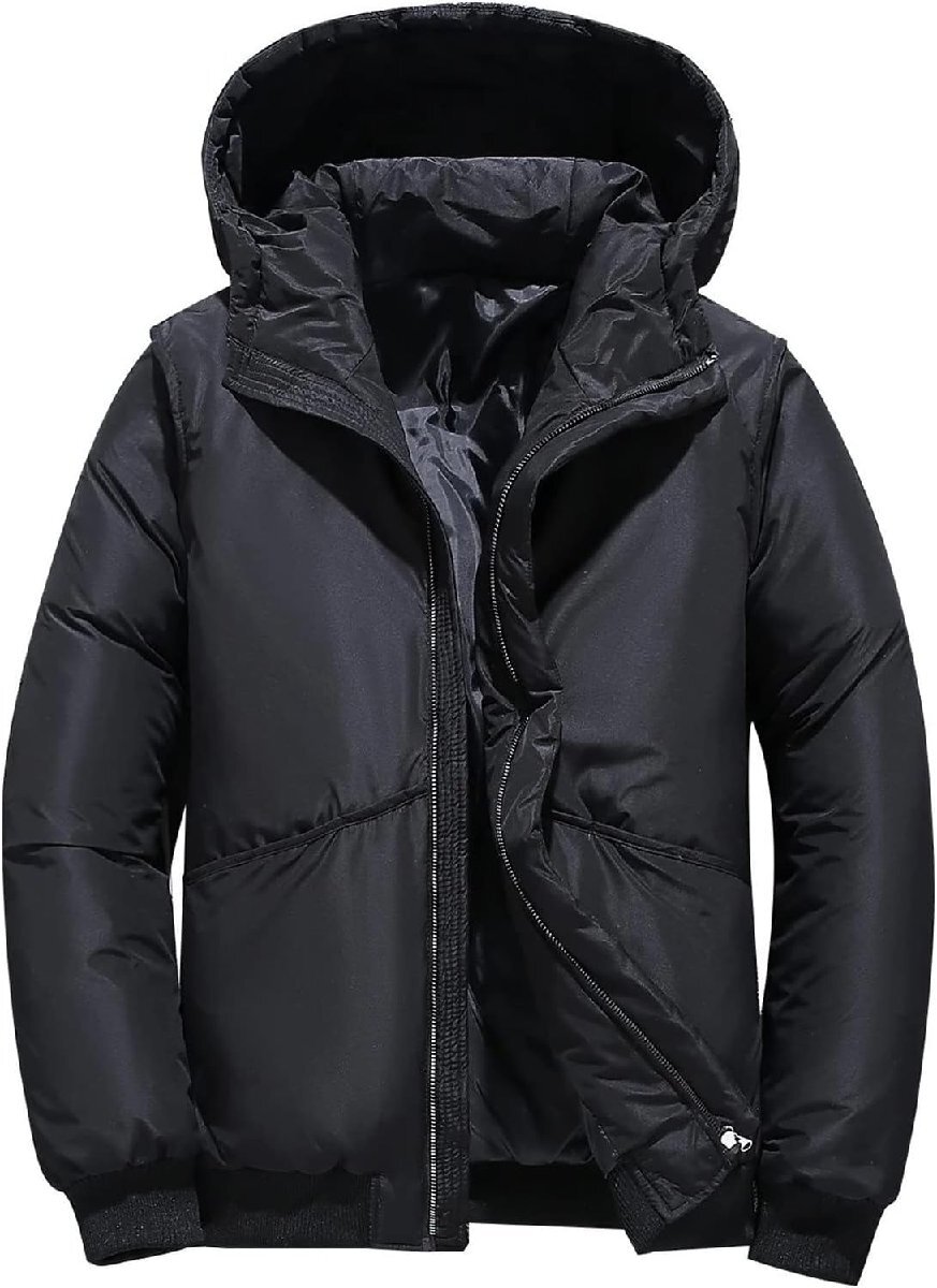 - 冬のダウンジャケットメンズフード付き暖かいコートフード付きパーカージャケットメンズダウンオーバーコート 冬用ジャケット