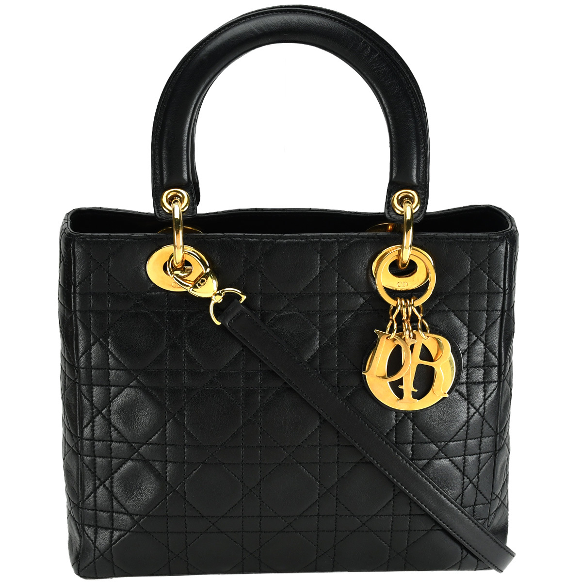 > ディオール Christian Dior レディディオール ミディアム カナージュ ハンドバッグ 2way ショルダーバッグ ラム レザー ブラック 黒 中古
