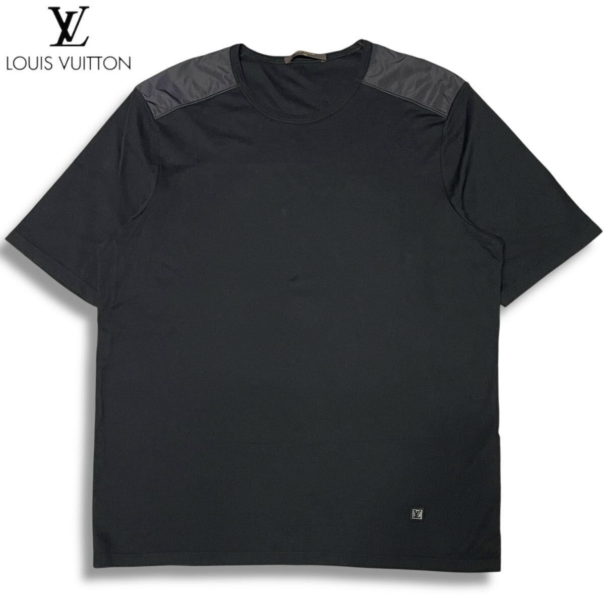 - 9 国内正規品 LOUIS VUITTON ルイヴィトン LV ロゴ ワッペン 半袖コットン Tシャツ カットソー クルーネック ブラック XXL イタリア製