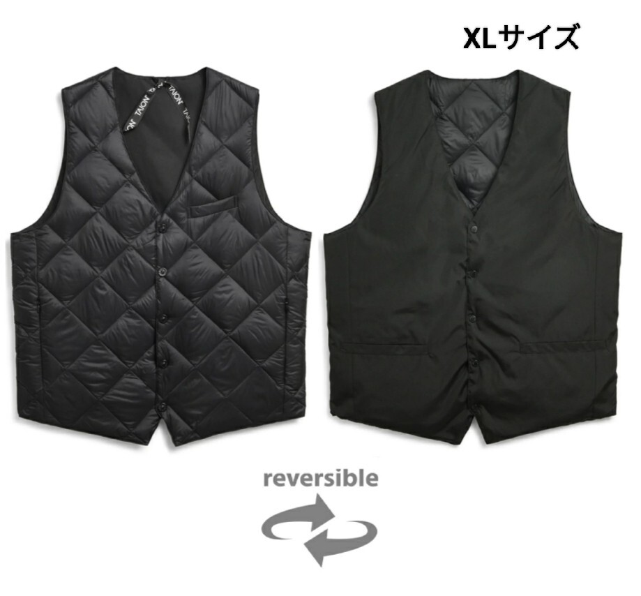 - TAION *タイオン*シティライン リバーシブル シングルボタン ジレ*大きいサイズXL*キルティング*メンズ*ベスト*黒*ブラック*インナーダウン
