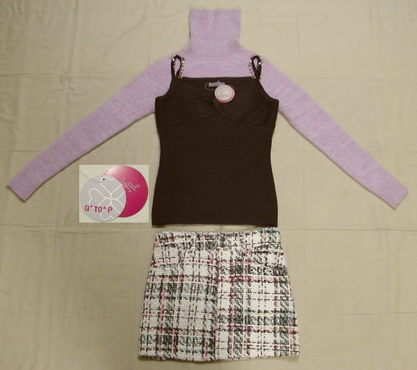 - ■新品+美品:タンクTOP&アンゴラ混タートル&スカート M位 DmJ23