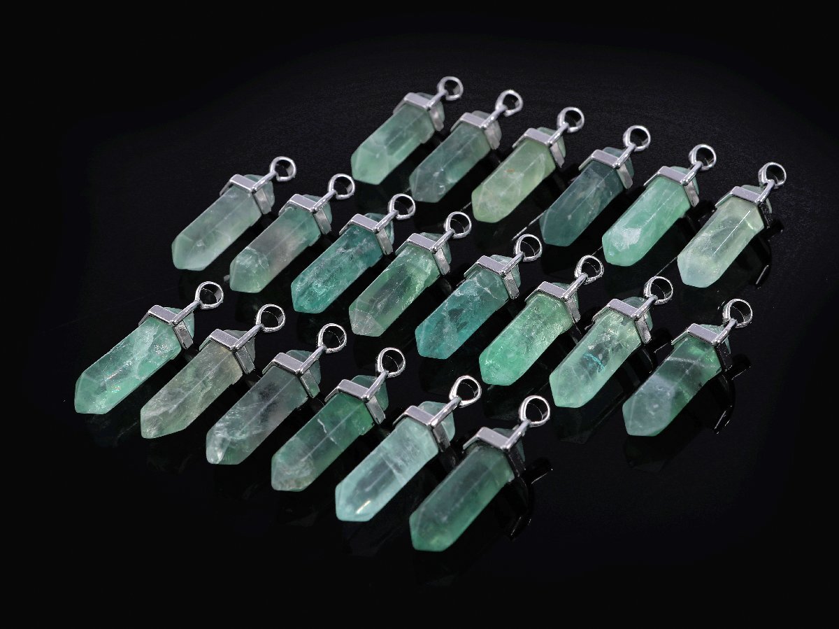 - ゆうパケ発送★天然石 蛍石 フローライト 六角柱ペンダントトップ 20点セット おまとめて大量 チャーム まとめ売り アクセサリー MSY-Nh9