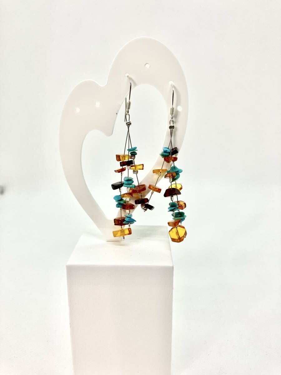 - 【新品】リトアニア産琥珀×トルコ石フックタイプピアス/こはくコハク/アンバー/揺れるデザイン