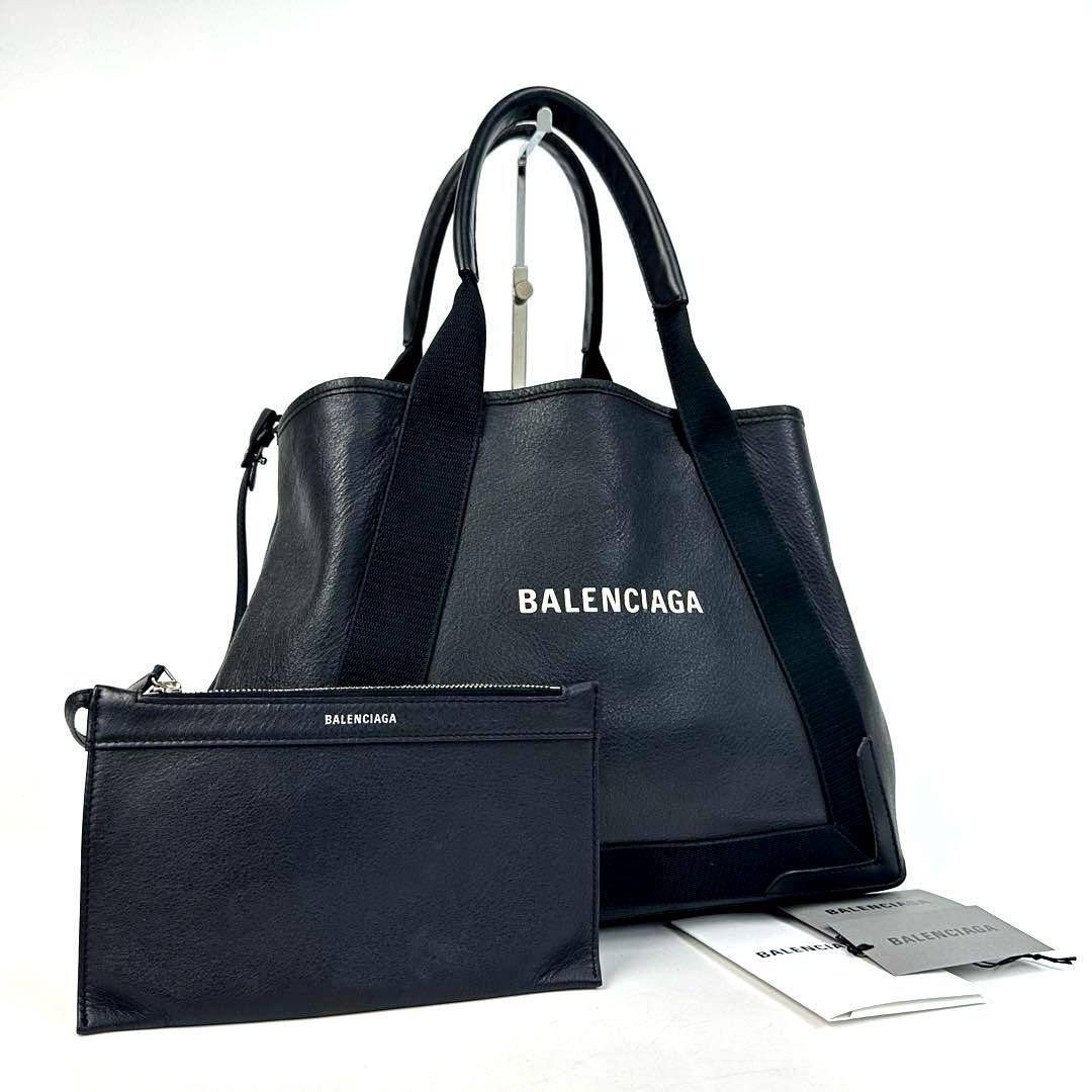 - 【美品】BALENCIAGA バレンシアガ トートバッグ エブリデイ ネイビーカバス M ハンドバッグ レザー 黒色 ブラック フォーマル *ポーチ付
