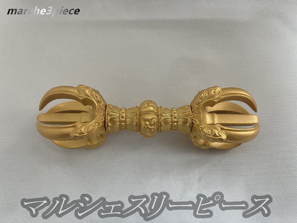 - 真言宗 真鍮精巧製 砂金装飾 鬼面五鈷杵 密教法具