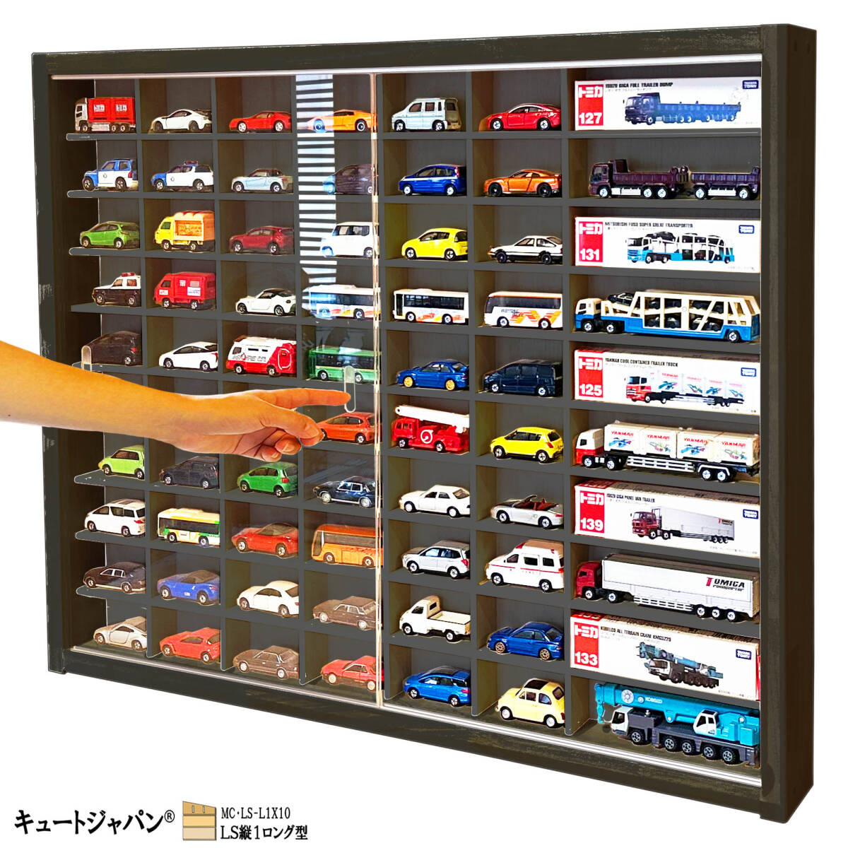 > 送料無料★ブラック色全塗装 ミニカーケース トミカ60台・ロングトミカ10台 アクリル障子付 日本製 コレクション LS縦1ロング型