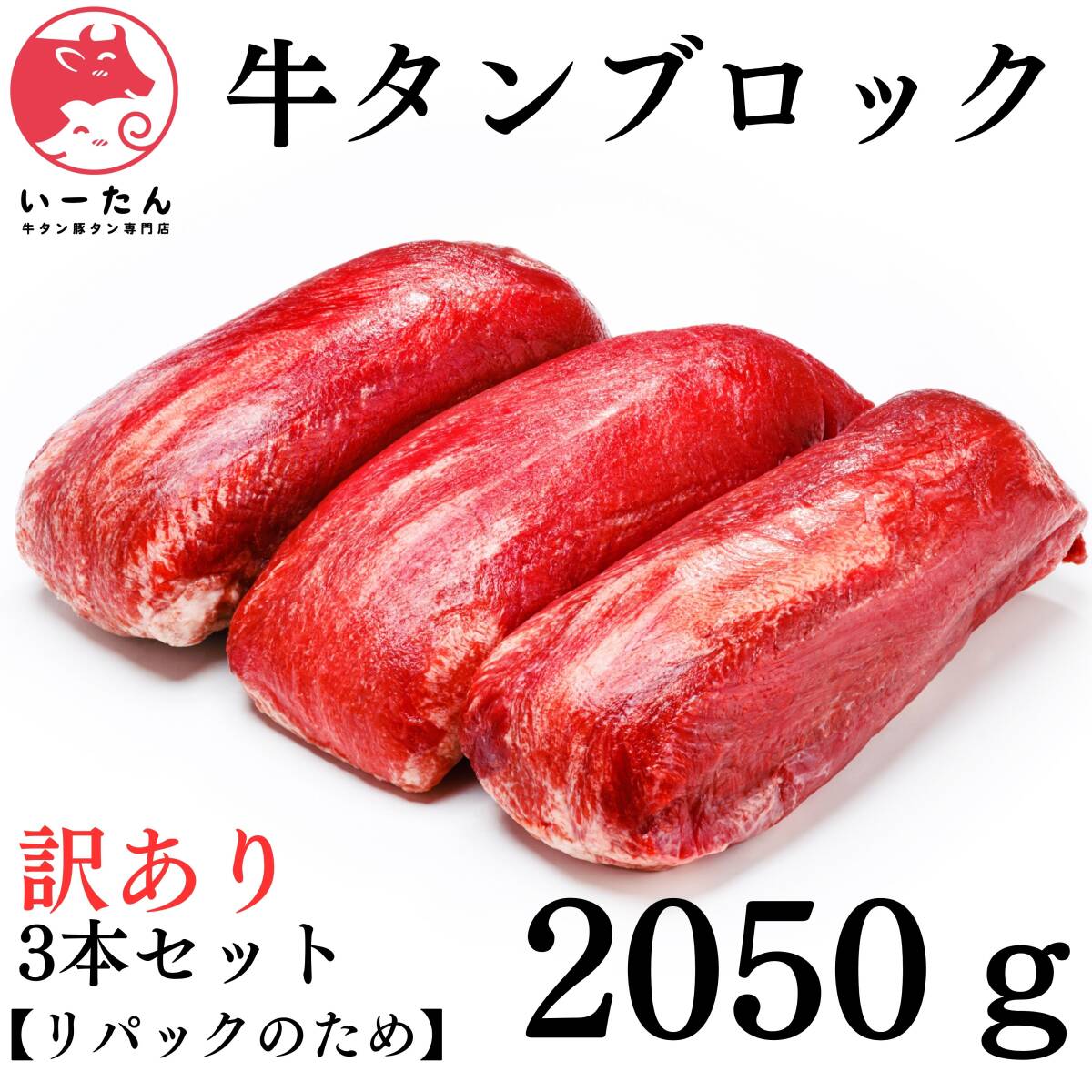 - 【傷あり(リパック)のため特別価格】3本セット 牛タンブロック(2050g) いーたん(e-tan) 業務用 塊肉 牛肉 ステーキ 肉