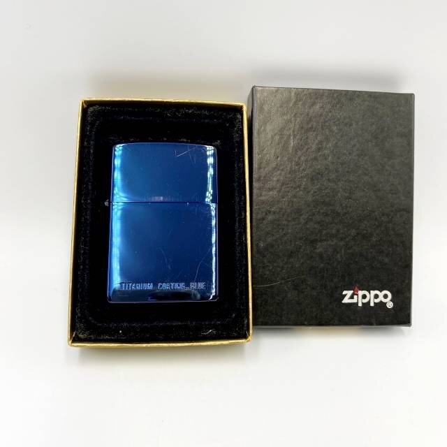> Zippo ジッポー オイルライター チタンコーティング ブルー 喫煙器具 コレクション 火花のみ確認済