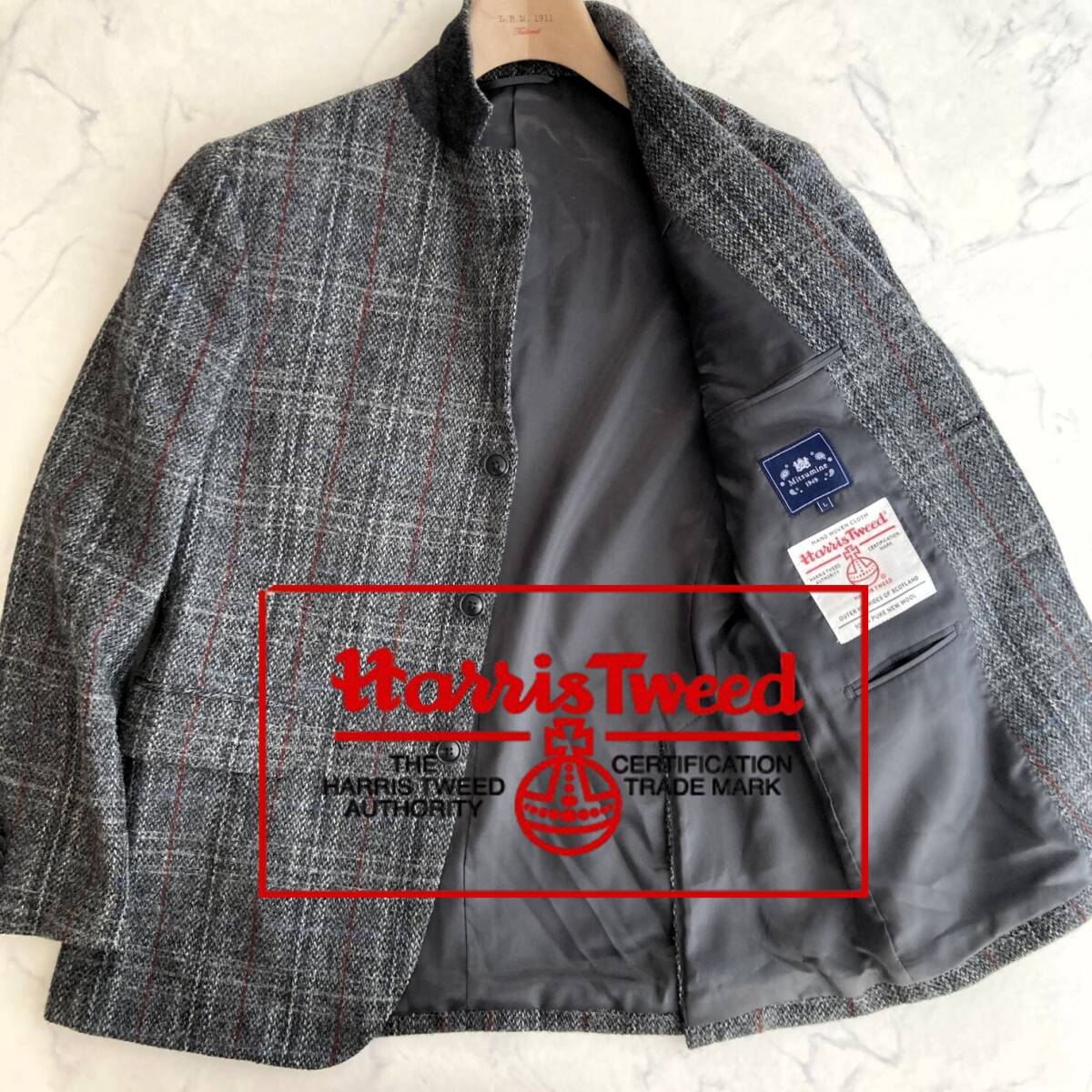 > サイズL◎ほぼ未使用品!!【極上の英国トラッド】■ミツミネ×ハリスツイード■ グレーチェックツイードジャケット ビジネス 大きいサイズ