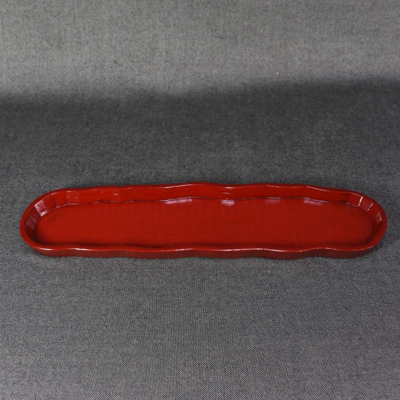 - ★天然木製 朱塗 刳り貫き 煎茶盆 長方盆 一文字盆 煎茶道具★