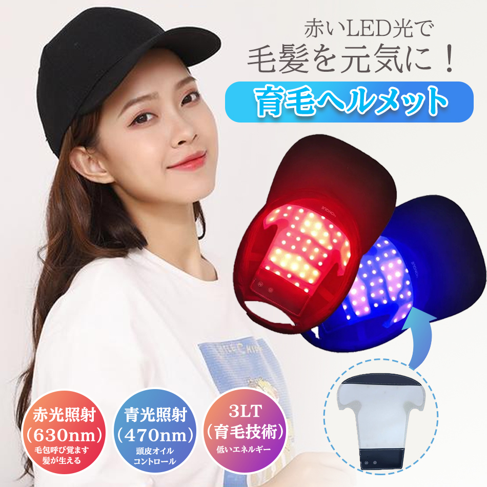 > LED赤色光育毛ヘルメット育毛キャップスカルプケア電動頭皮ケアスカルプ 育毛ヘアケア頭皮マッサージ赤色LED照射青色LED照射育毛 qs-045