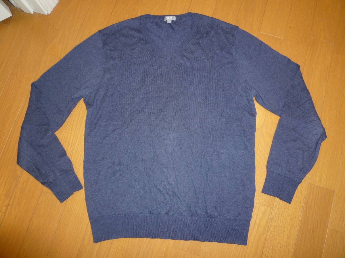 - USED ユニクロ ブルー系 コットンカシミア Vネックセーター M 351-137009