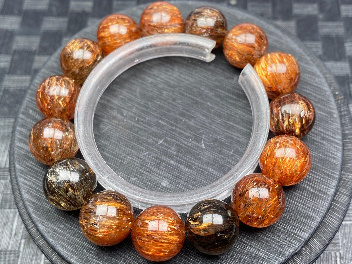 - 即決 0617k715 天然美品★【65Aキラキラブラック&ブラウンルチルクォーツ】★ブレス 14.3-14.8mm(新品)
