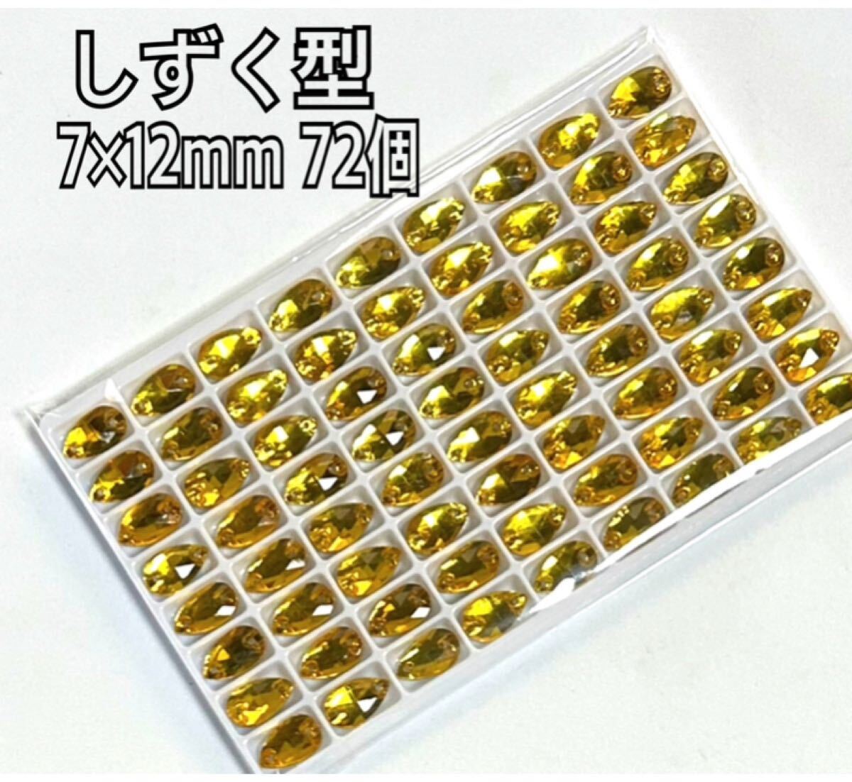 - 7×12mm 72個 しずく型ガラスビジュー 高輝度 衣装装飾 レオタード 新体操 ソーオン 黄色