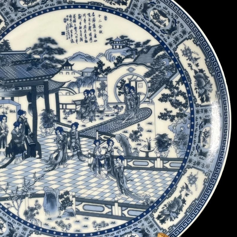 - 磁器 青と白彫刻 青花 人物物語 青花観賞皿 観賞皿 置物 磁器 中国陶磁 海外還流 清乾隆 中国美術