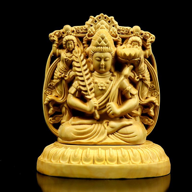 - 送料無料! 虚空蔵菩薩 両面 黄楊木 両面彫刻 観音菩薩 阿弥陀仏 仏護神仏 像仏教美術 細密彫刻 菩薩像 匠高技術 木彫 置物 sux228
