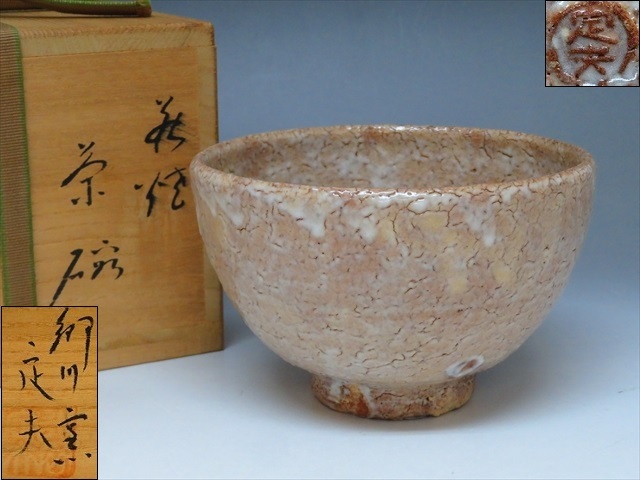 - ◆◇郷川窯 永岡定夫 作 茶碗 萩焼 高8.7cm 径13.6cm 茶道具 共箱付◇◆