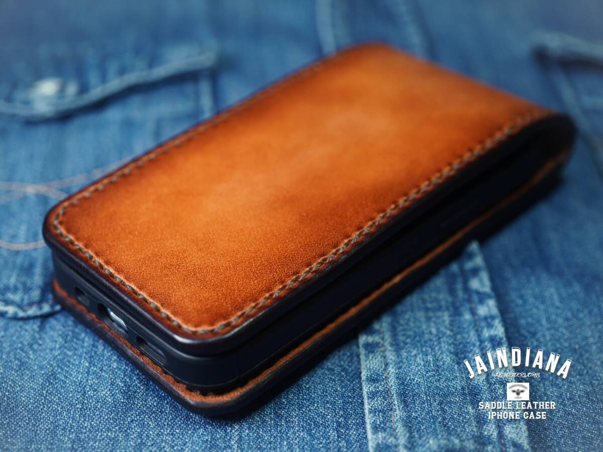 > iPhone17ケース 手縫い サドルレザー ビンテージ染めライトブラウン