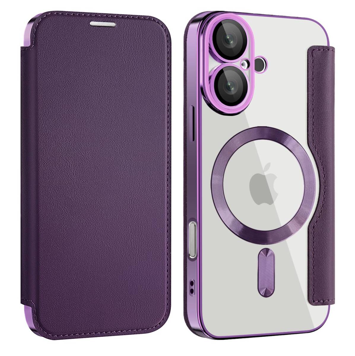 - スマホカバー(パープル) 全面保護 耐衝撃 防塵 薄型 軽量 スマホケース レザー PU革 カード入れ ワイヤレス充電対応 手帳