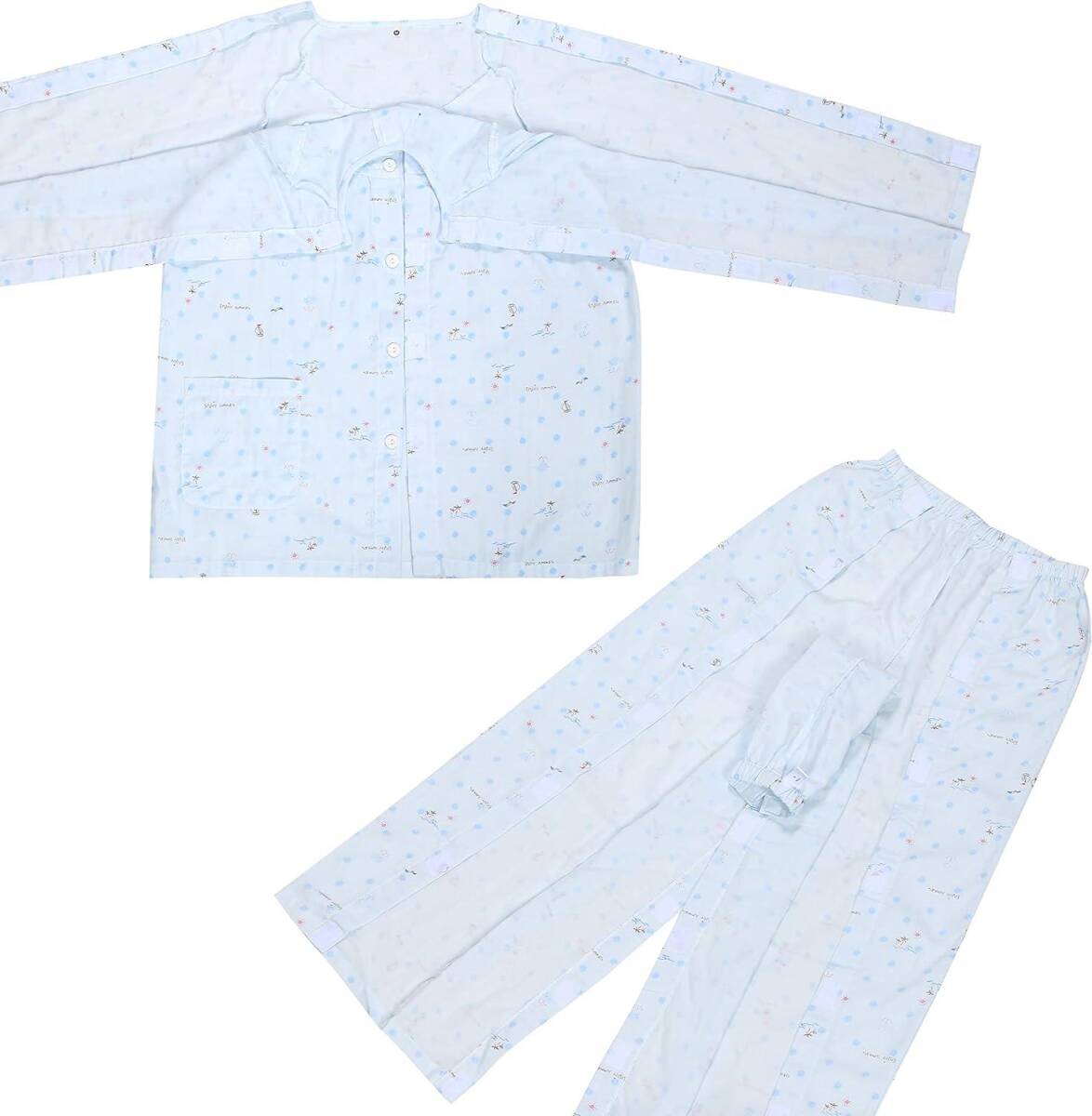 - 介護ねまき 女性用 サッと開閉! ラグラン袖で動きやすい 水色 (Lサイズ)