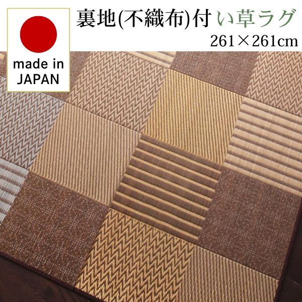 > 純国産京刺子柄い草ラグ merk メルク 不織布あり 261×261cm ブラウン