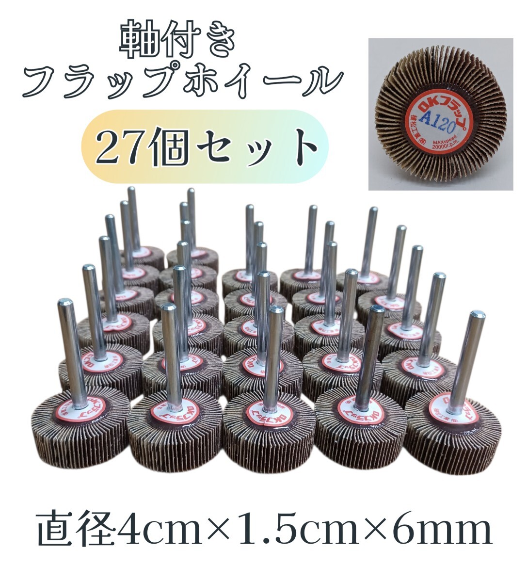 > 岩①)軸付きフラップホイール 27個セット 粒度120番 フラップホイール OKフラップ グラインダー 研磨 研削 工具 250924(N-1-3