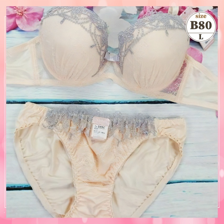 > Zb8031◎新品 ブラショーツセット【B80/L】下着 ランジェリー 丸胸 シャンデリア刺繍 クリーム
