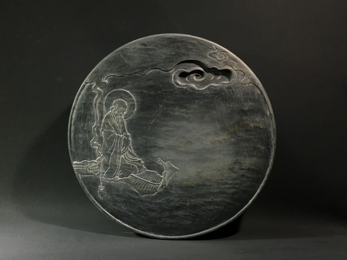 - 【瓏】老坑金眉紋歙石彫 悟禅文房歙硯 郭尚先銘 清時代 手彫り 文房四寶 書道具 中国古硯 古美術 蔵出