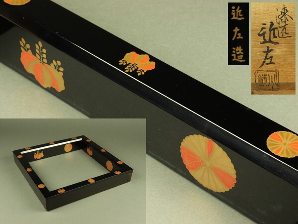 - 【宇】2812 漆匠 川端近左造 高台寺蒔絵 炉縁 共箱 茶道具