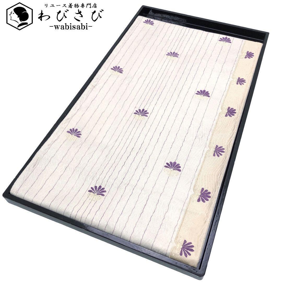 > 袋帯 西陣聚楽 帝王紫 すくい織 抽象花模様 乳白色 O-4475 着物 きもの kimono 和服 和装 中古 リサイクル着物 【送料無料】