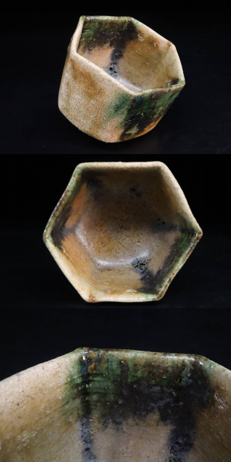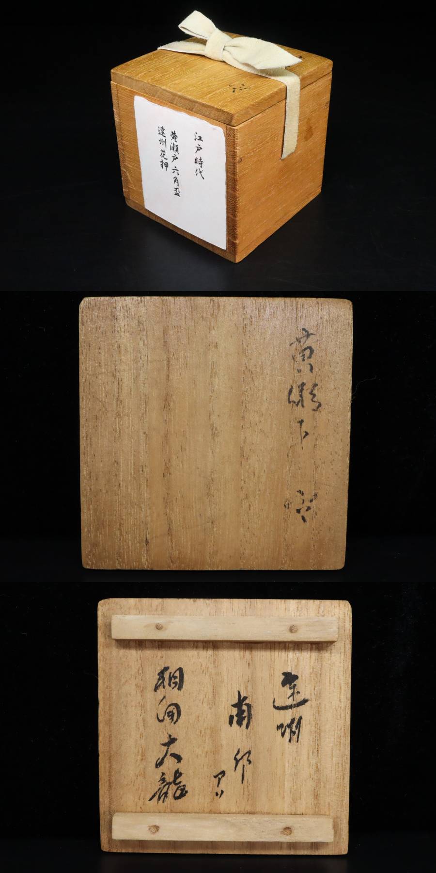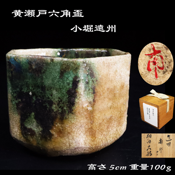 > ◇雅◇ 江戸時代 小堀遠州 黄瀬戸六角盃 黄瀬戸釉 酒盃 遠州花押 高さ5cm/100g ぐい呑 酒器 盃 共箱/TKB.25.9 [A158.5] VPN5