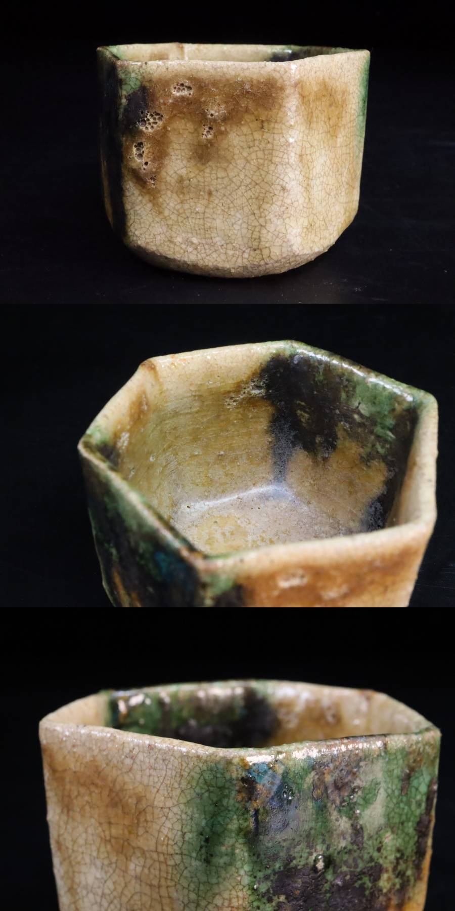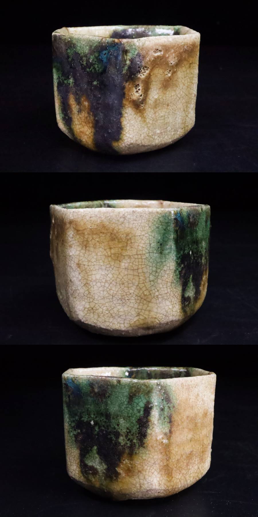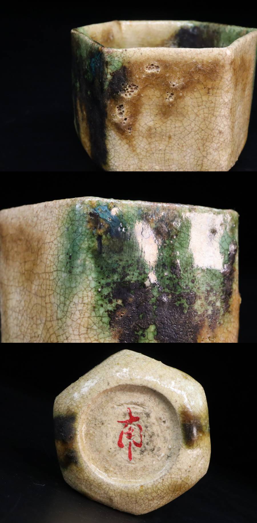 > ◇雅◇ 江戸時代 小堀遠州 黄瀬戸六角盃 黄瀬戸釉 酒盃 遠州花押 高さ5cm/100g ぐい呑 酒器 盃 共箱/TKB.25.9 [A158.5] VPN5