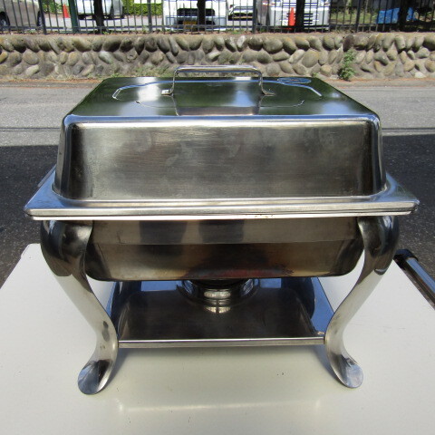 - 【埼玉発】チューフィングディッシュ④ ステンレス 角皿 湯煎式 フードウォーマー ビュッフェ バイキング 蓋付 燃料器付 中古★7-0924-4