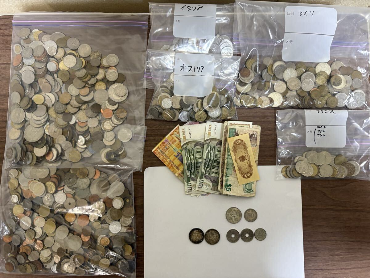 - 《外国の大量 硬貨/外国古銭/日本古銭/海外紙幣など約10㌔/一部フランス硬貨に銀貨有り》