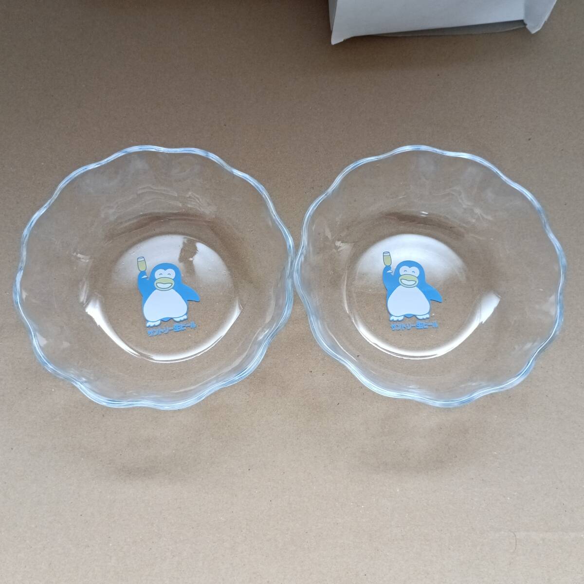 - 【サントリー】 サントリー生ビール ペンギン ガラス器 ガラス皿 2枚 新品未使用