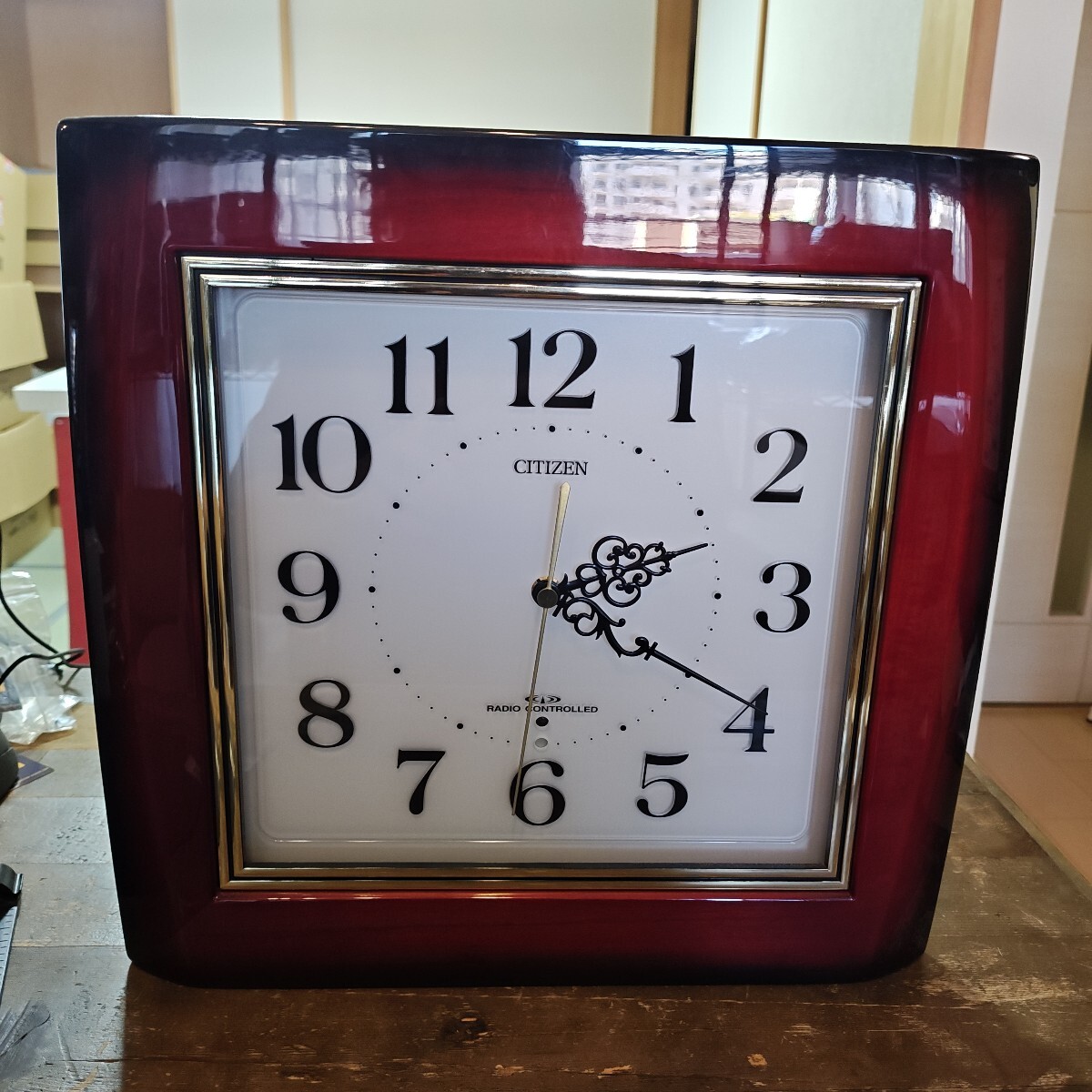 - 92453 日本古風堂 CITIZEN シチズン アンティーク調 木製 電波掛け時計 4MY668 動作確認済み