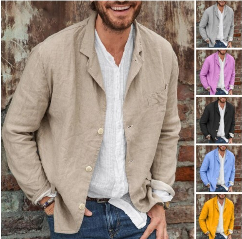 - 人気 メンズテーラードジャケットサマージャケットリネンジャケットブレザーカジュアルスーツビジネススーツアウター 黒 5色 S~5XL