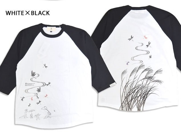 - 秋の訪れラグラン七分袖Tシャツ◆喜人 ホワイト×ブラック XLサイズ KJ-52106 和柄 和風 7分 半端袖 きじん