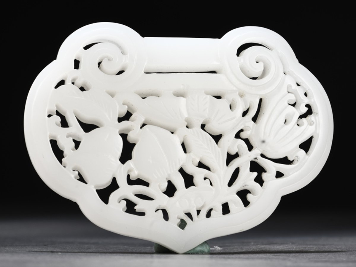 - 【安】清時代 和田玉 多子多福多寿紋鎖形佩 極細工 古置物 古擺件 中国古美術 時代物 古董品 261