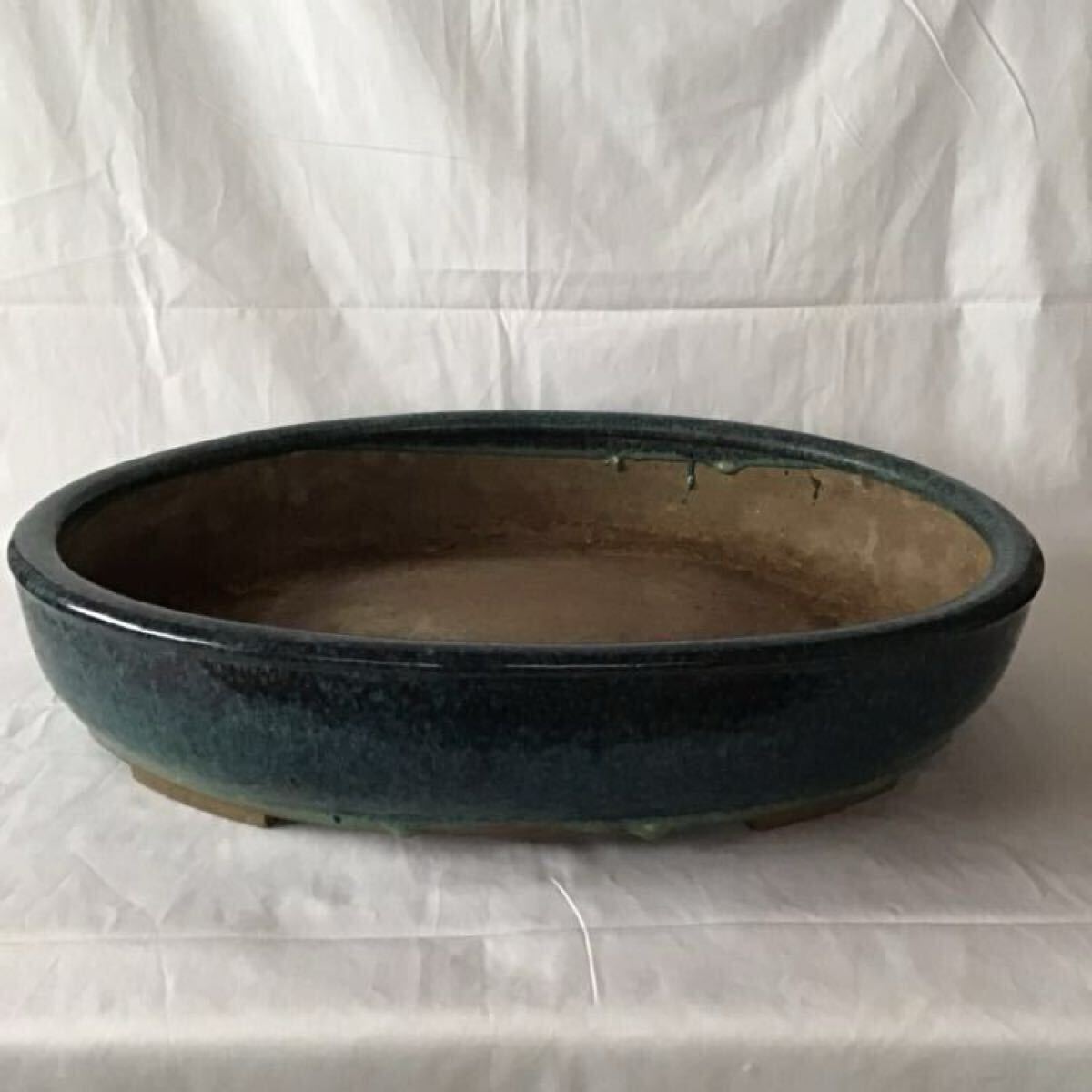 - 時代物 希少 蔵出し【古渡 中国古鉢 古盆栽鉢 『葛明祥造』在銘 海鼠釉楕円鉢】