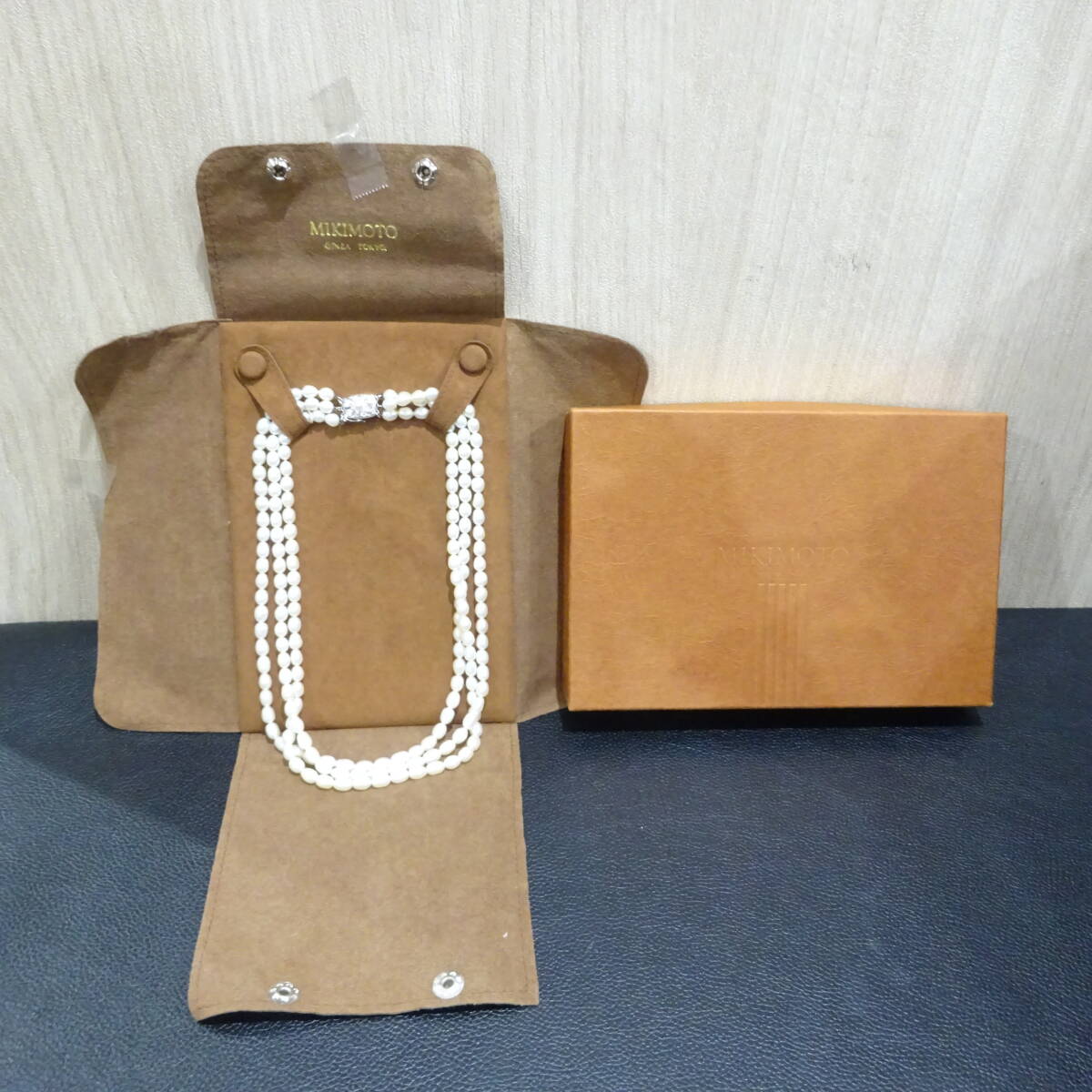 - MIKIMOTO ミキモト パール 真珠 三連 ネックレス 箱付き 重さ約49.4g位 大きさ 約5mm位 留め具シルバー アクセサリー ペンダント