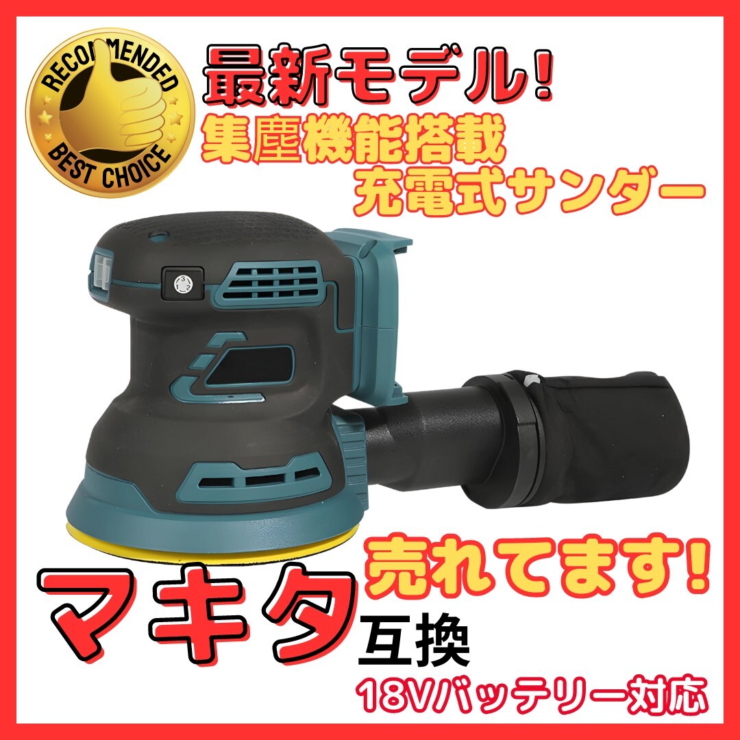 - (A) マキタ 互換 充電式 ランダム オービット サンダー ポリッシャー コードレス 小型 125mm 18V 電動 工具 研磨 サビ落としり