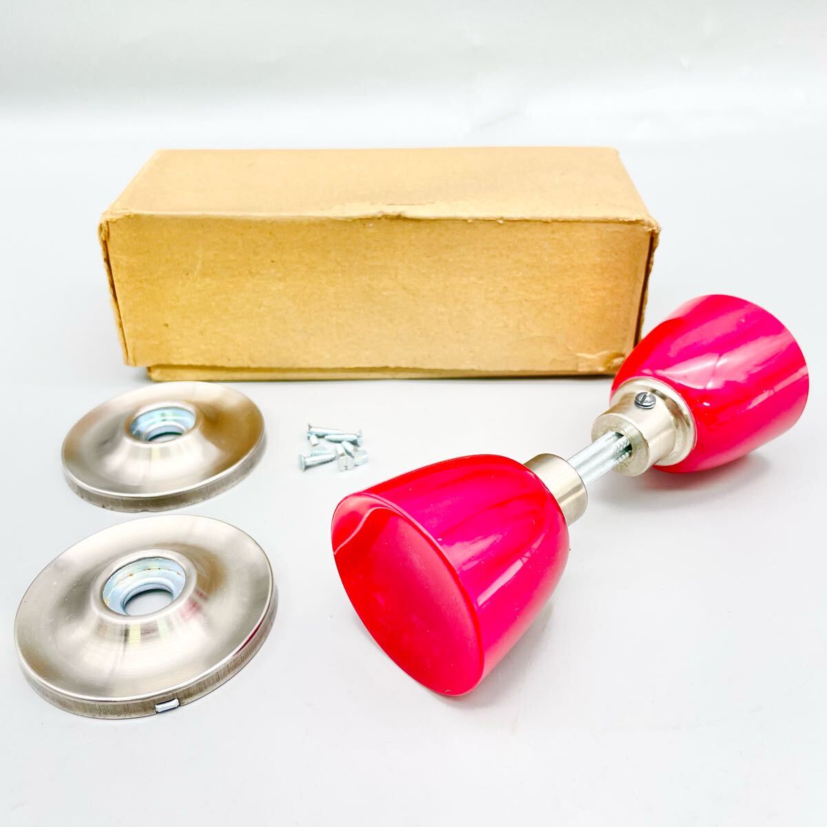 - [新品 未使用品] アンティーク ドアノブ 握り玉 両玉 ピンク パール 建具 室内 ドア 扉 樹脂製 ハンドル 昭和 レトロ 大工 金物屋 在庫品