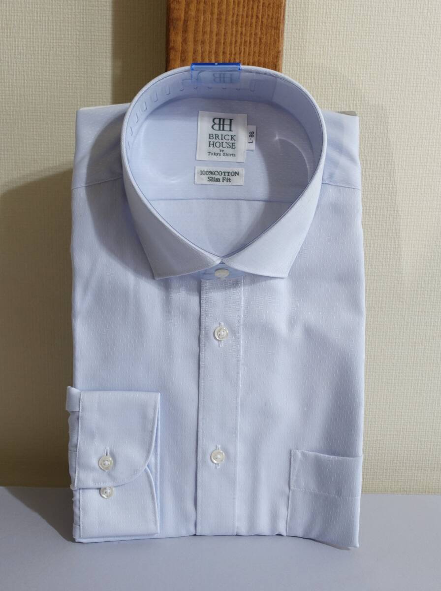 - 未使用 保管品★BRICK HOUSE/ブリックハウス◆シャツ ワイドカラー ブルー系 Slim Fit クールビズ TOKYO SHIRTS 東京シャツ