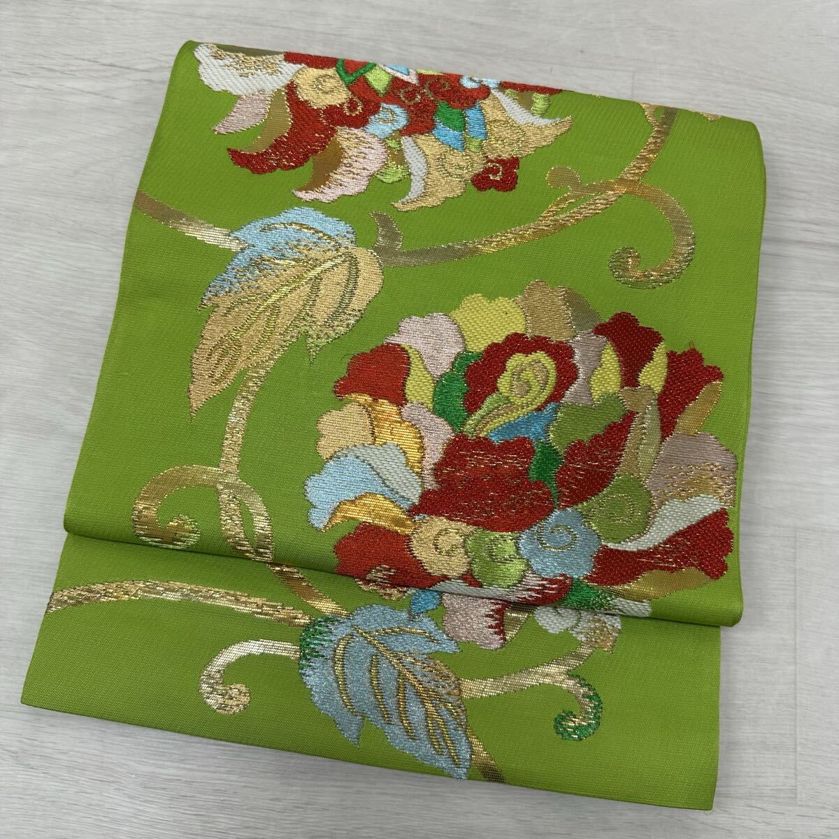 - 袋帯 唐織 大柄花唐草 煌びやかな織出し 正絹 着物 W-4385
