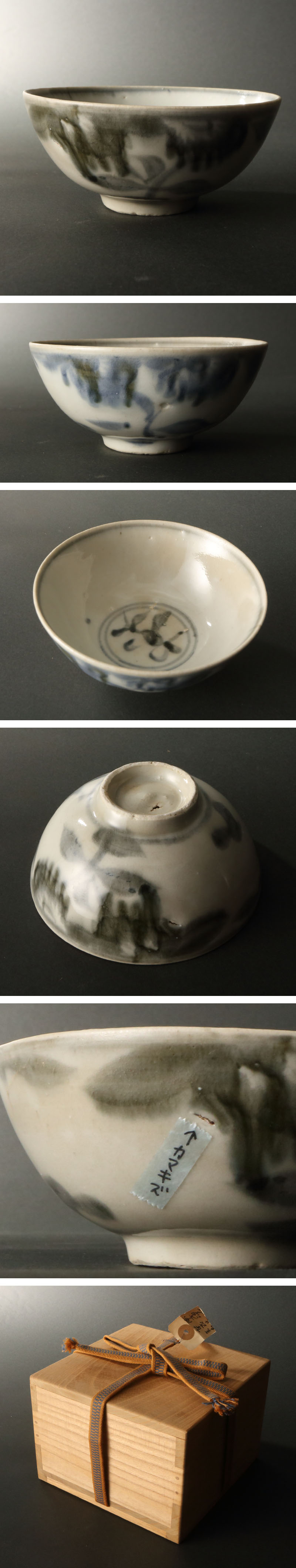 > 委託HK◇時代 染付草花図安南茶碗(茶道具 陶磁器 陶芸 安南焼 東南アジア ベトナム 古染付 呉須 茶陶 茶事 茶席 茶の湯 古物 古玩 骨董)