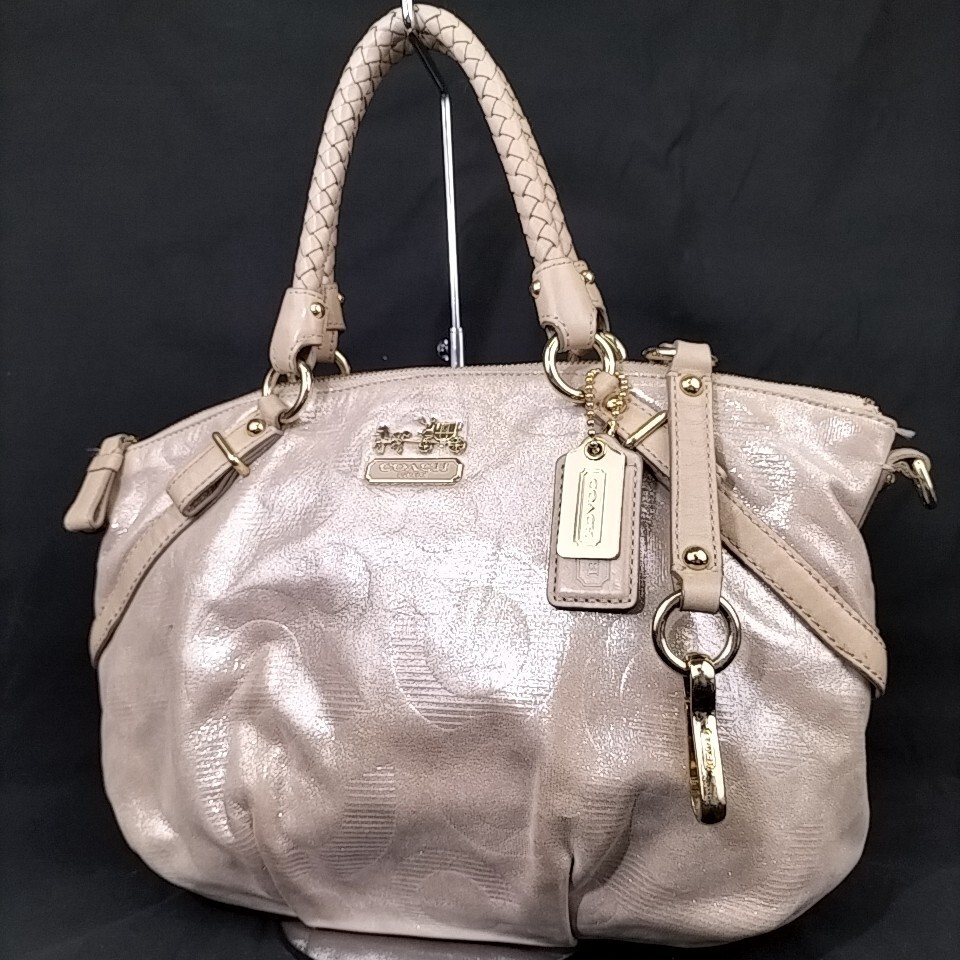 > 【 COACH 】 コーチ オプアート 総柄 一部 レザー 2way ベルト付き ハンドバッグ 手提げ ミニトートバッグ レディースバッグ ベージュ系 G