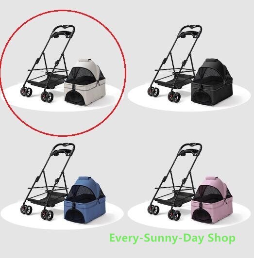 - ペットカート分離式 折り畳み 4輪 ストッパー付き 小物入れ 手洗い 軽量 お出かけ 散歩 540/グレー